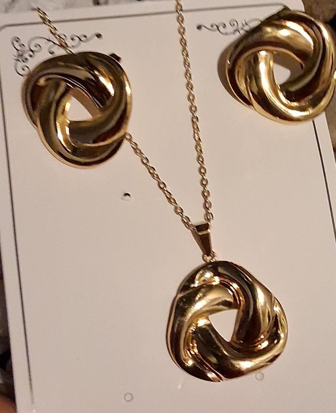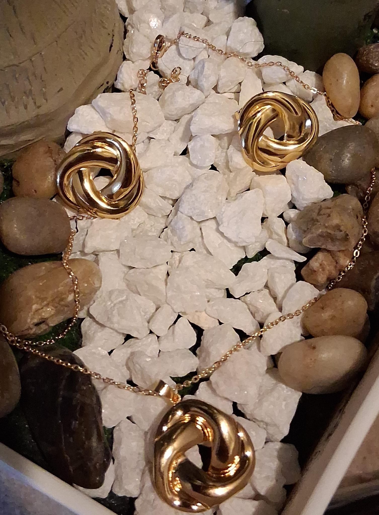 All pieces feature the same distinctive knot/loop design in a gold tone.