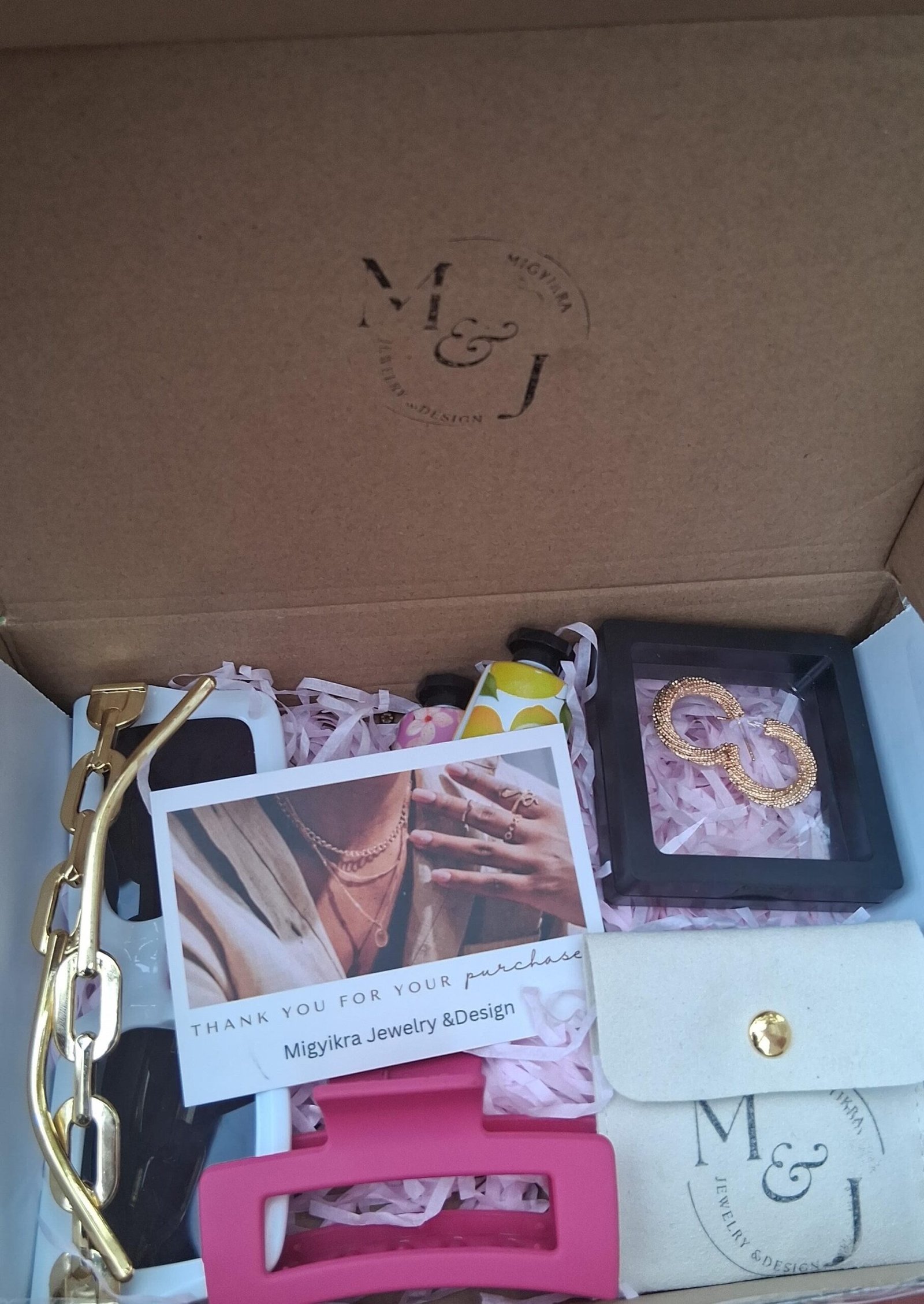 This Gift Box contains earrings, bracelet, sunglasses, a free gift and hairclip.